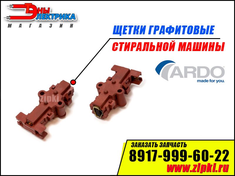 ОПИСАНИЕ: Щетки угольные / графитовые для мотора стиральных машин Ardo (Ардо). Щетки относятся к категории расходных запчастей которые подлежат замене раз в 5 - 10 лет. При замене щеток необходимо менять 2 щетки сразу.