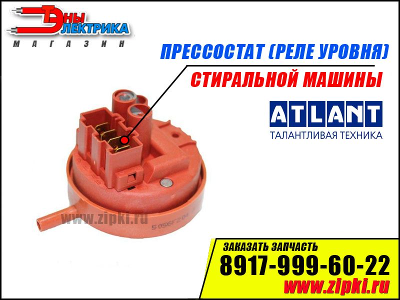 ОПИСАНИЕ: Пресостат уровня воды / реле уровня воды / датчик уровня воды для стиральной машины Атлант / Atlant, предназначен для измерения наполнения бака. В процесе стирки датчик сигнализирует программе наличие и отсутствие воды в баке. Поломка происходит редко , зачастую ломется датчик от излишнего пенообразования , такжде износ диметаллической пластины которая регулирует сам уровень!