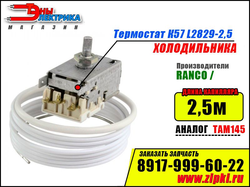 ОПИСАНИЕ: Терморегулятор механический для холодильника предназначен для регулировки температурного режима в камерах холодильника. Оригинальные капиллярные регуляторы производство Чешкой фирмы Ranco. Идеально заменяют Российские регуляторы ТАМ145. К слову регуляторы импортного производителя гораздо точнее и не нуждаются в дополнительной настройке температур. Длина капиллярной трубки 2.5 м - 2500мм. Устанавливается на морозильные камеры холодильников : Стинол, Indesit, Ariston, Beko, Pozis, LG, Атлант , Саратов и других.
