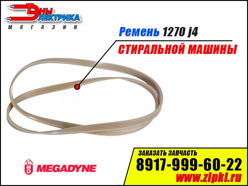 ОПИСАНИЕ: Оригинальный ремень привода 1270 J4 для стиральной машины. Ремень необходим для передачи крутящего момента от приводного мотора машинки к баку. Если машинка перестала крутить барабан это явный признак поломки приводного узла машинки, необходимо убедится в том что ремень слетел либо порвался. Порватся и слететь ремень может по нескольким причинам: заклинило подшипники, погнуло шкив, ремень растянулся от времени.