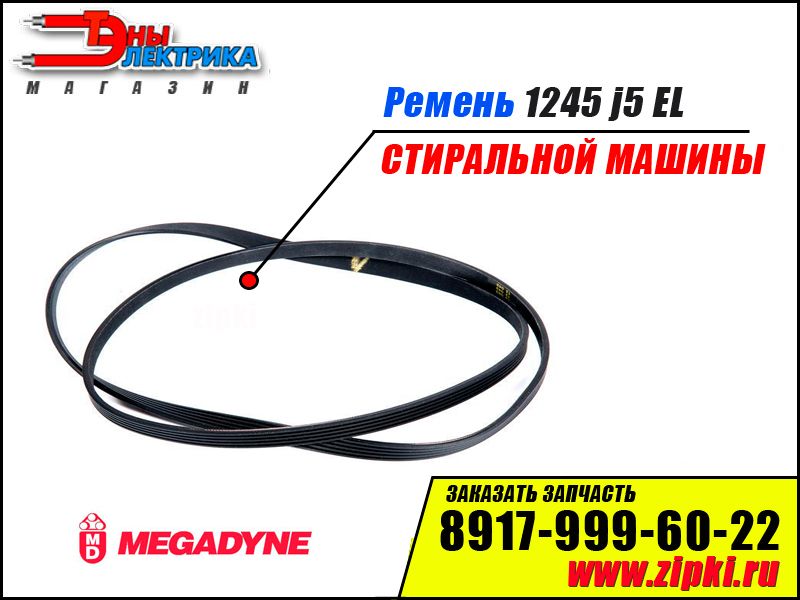 ОПИСАНИЕ: Оригинальный ремень привода 1245 J5 EL для стиральной машины. Ремень необходим для передачи крутящего момента от приводного мотора машинки к баку. Если машинка перестала крутить барабан это явный признак поломки приводного узла машинки, необходимо убедится в том что ремень слетел либо порвался. Порватся и слететь ремень может по нескольким причинам: заклинило подшипники, погнуло шкив, ремень растянулся от времени.