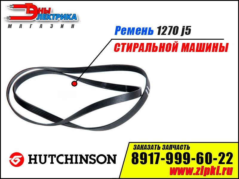 ОПИСАНИЕ: Оригинальный поликлиновый ремень 1270 J5 для стиральных машин. Данный ремень производит компания "Hutchinson", что гарантирует Вам надежность в дальнейшей работе Вашей техники. Средний срок службы приводного ремня от 3 до 15 лет , все зависит от условий работы. Если Вы часто перегружаете барабан бельём, это может привести к износу подшипников, также к растягиванию ремня. Если Вы вдруг заметели что ремень потрескался не нужно ждать пока он порвется и намотается на вал мотора, как только обнаружили неисправность необходимо сразу заменить ремень на новый.