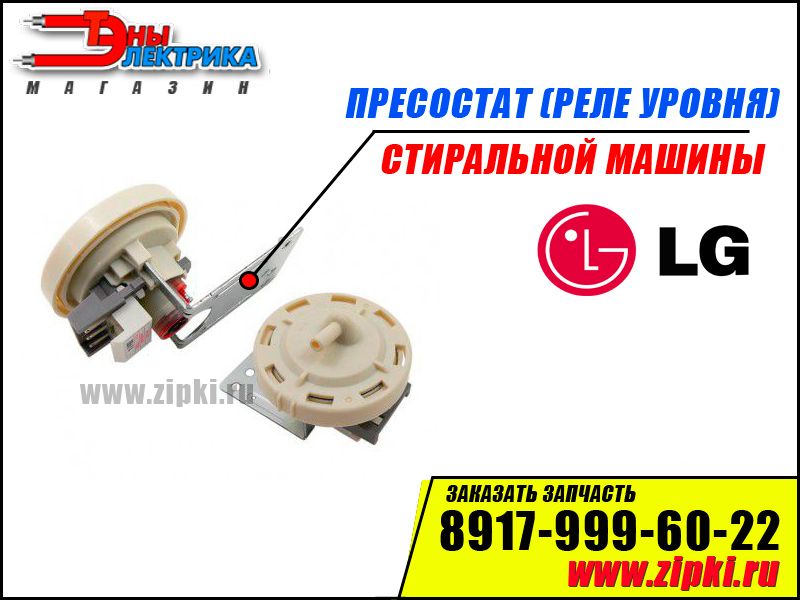 ОПИСАНИЕ: Пресcостат уровня воды / реле уровня воды / датчик уровня воды для стиральной машины Элджи / LG, предназначен для измерения наполнения бака. В процесе стирки датчик сигнализирует программе наличие и отсутствие воды в баке. Поломка происходит редко , зачастую ломется датчик от излишнего пенообразования , такжде износ диметаллической пластины которая регулирует сам уровень!