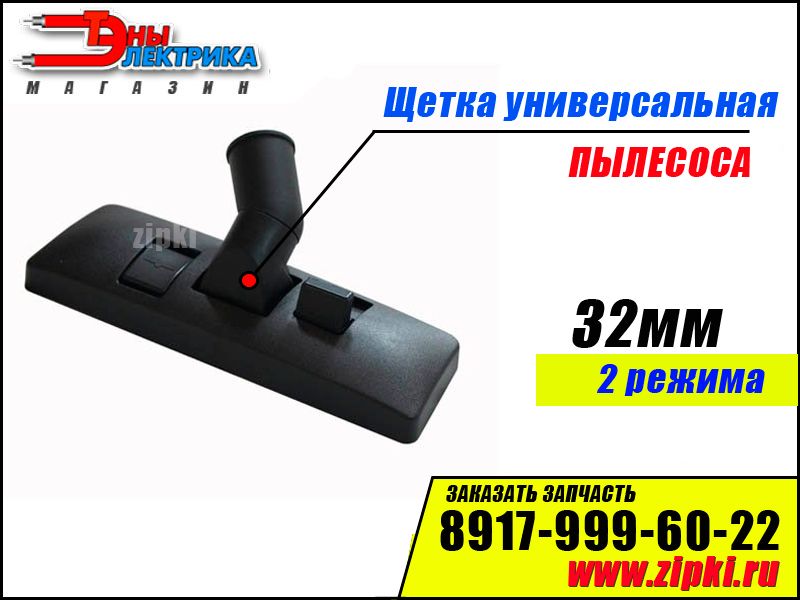 ОПИСАНИЕ:Универсальная щетка для пылесоса под трубу диаметром 32мм. Данная щетка подходит под большинство брендов и моделей. Щетка с двумя режимами сухой уборки, линолиум и ковер. Переключатель режимов расположен на корпусе щетки, что позволяет одним нажатием менять режим уборки!