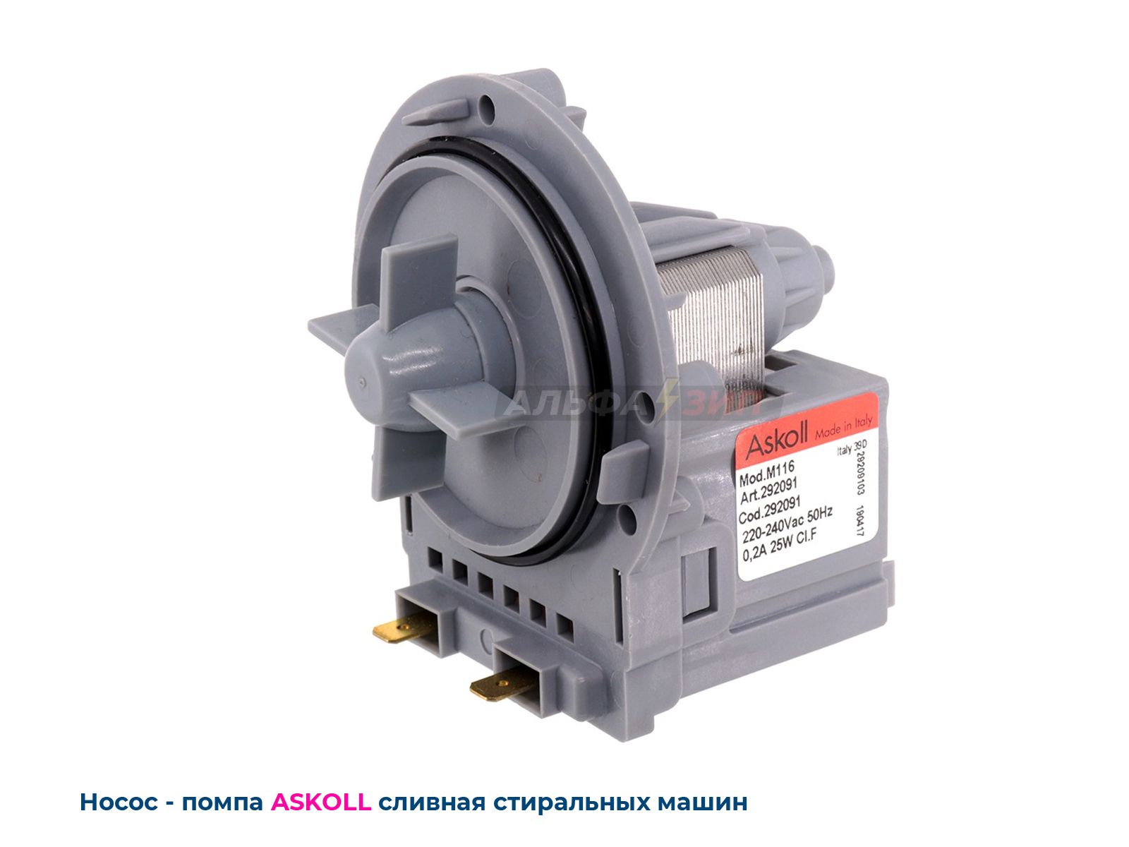 Насос сливной (помпа) Askoll M116 25Вт 292226 для стиральной машины Candy, Indesit, Haier