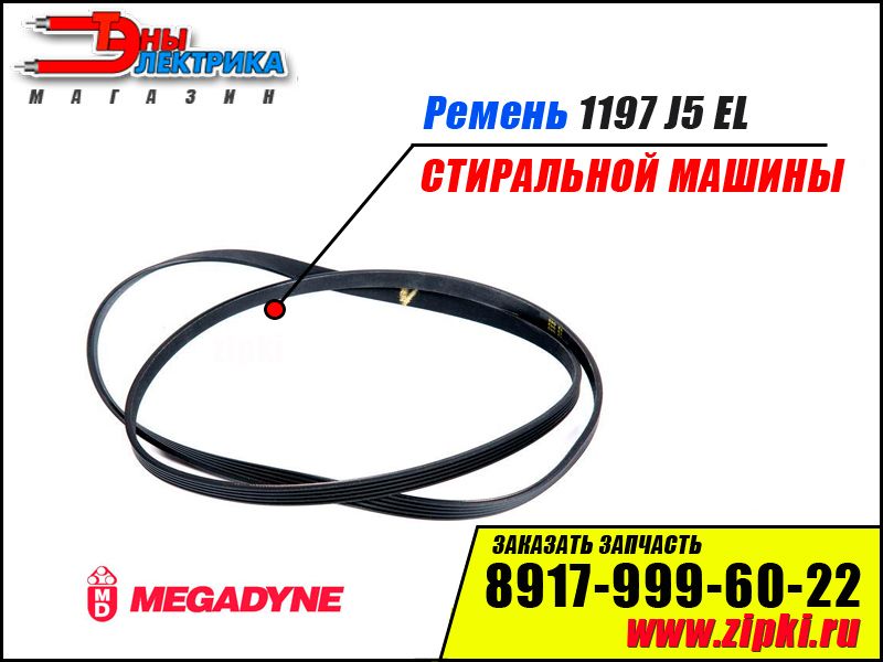 Ремень 1197 J5 EL «Megadyne» для стиральной машины Whirlpool