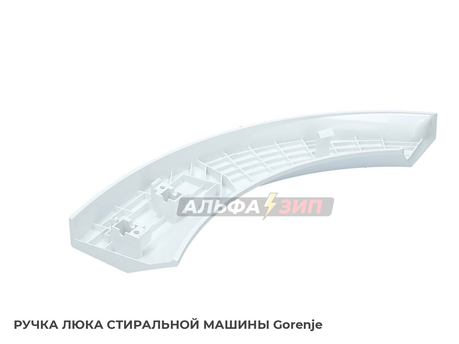 Изделие представляет собой целостную фигурную-саблевидную пластиковую деталь литую со всеми технологичными изгибами и креплениями предусмотренные производителем. Типичный пример сочетания удобства и дизайна горизонтальных машин GORENJE линейки серии "W" - ручка открывающая прозрачную дверцу органично слитая с окружностью по краю дверцы.