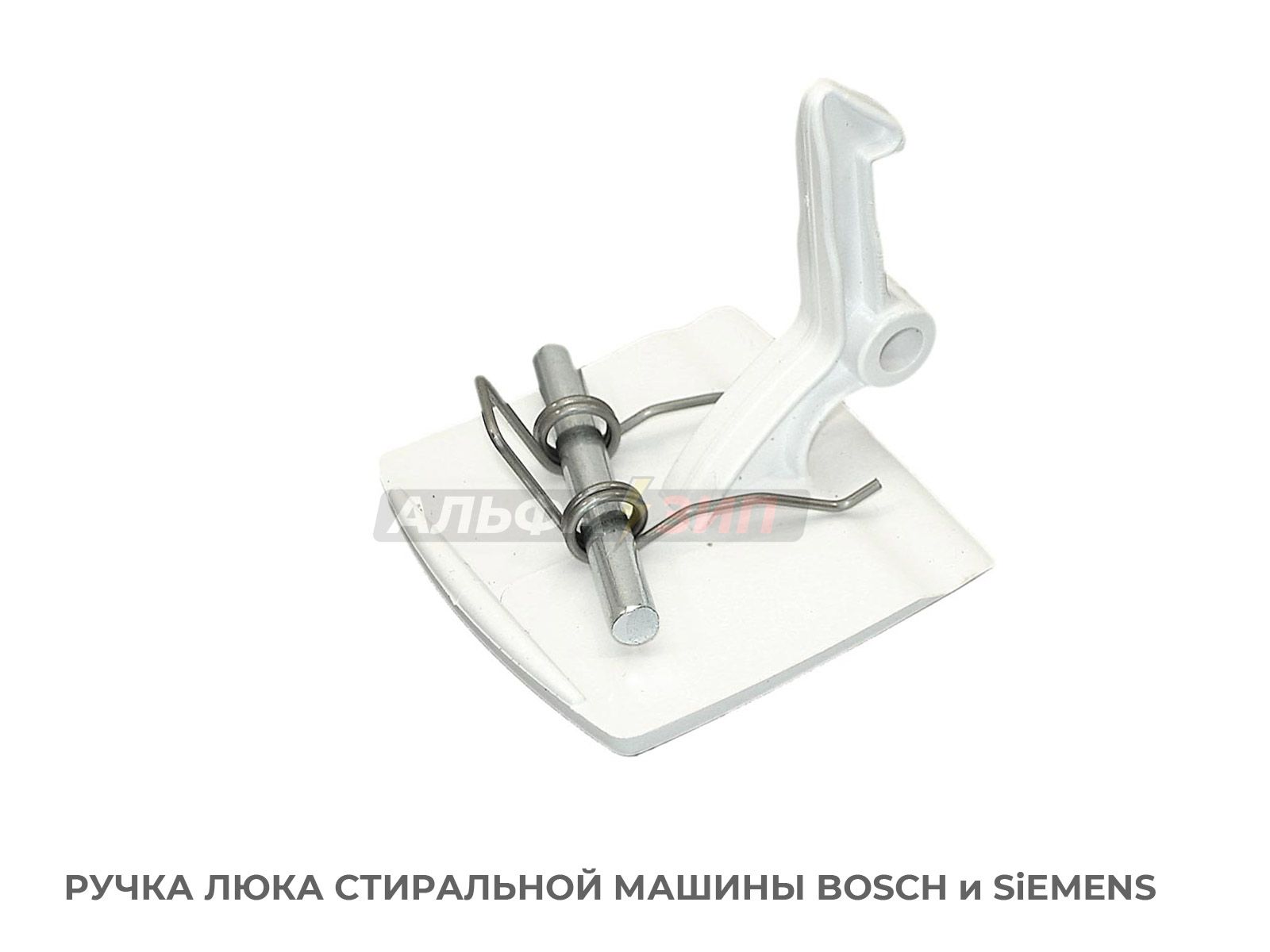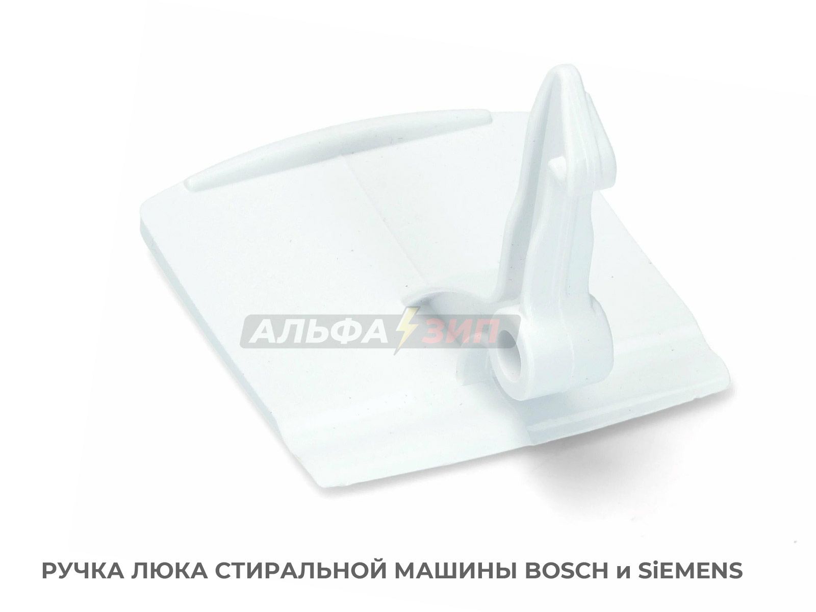 Ручка люка (рычаг открывания двери) для стиральных машинок фирмы BOSCH / SiEMENS (Бош и Сименс). Ручка изготовлена из пластика белого цвета, выполняет функцию рычага который тянет крючок.