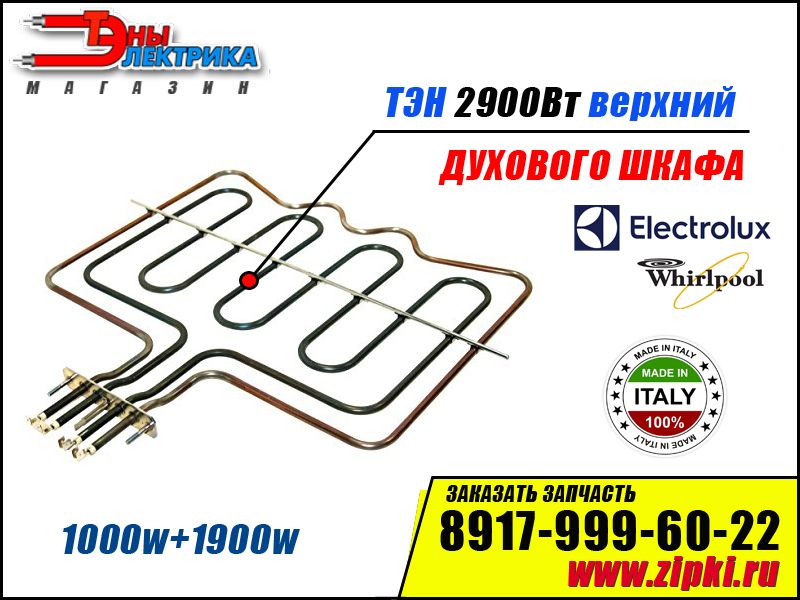 ОПИСАНИЕ: ТЭН духовки для духового шкафа Electrolux / AEG. Данный нагревательный элемент устанавливается сверху духовки. Если ТЭН перегорает, духовка заметно теряет интенсивность нагрева, а также выпечка начинает плохо пропекаться. Обычно тен может отгореть по одному контуру. Устанавливается данный ТЭН на духовки :Электролюкс, АЕГ.