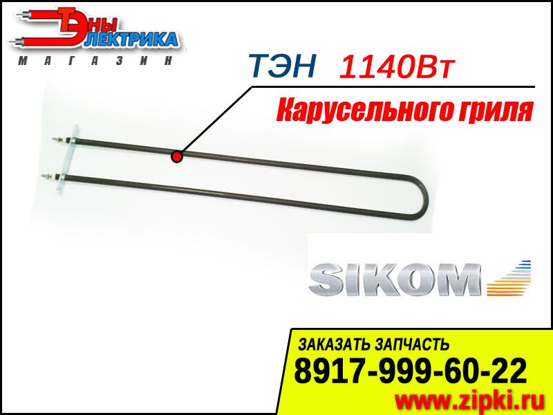 ОПИСАНИЕ: Нагревательные элементы / ТЭНы для карусельного гриля производства "Сиком". Данные ТЭНы поставляются мощностью 1140 ватт, на пластине для крепления к корпусу гриля для кур "Sikom". Устанавливаются нагреватели в нижнюю часть гриля. Основным преимуществом данных ТЭНов является их износостойкость к жирам. Так как трубка ТЭНов изготавливаются из специального сплава металов.