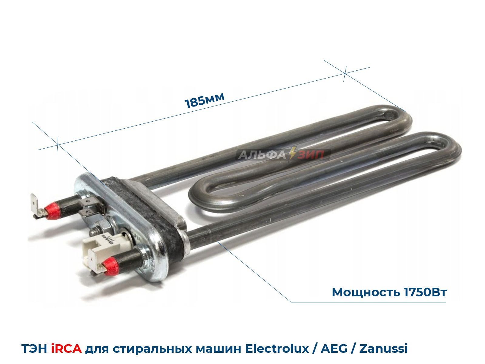 ТЭН 1750Вт с датчиком, длина 185мм для стиральных машин Zanussi, Electrolux, Aeg 1326475207